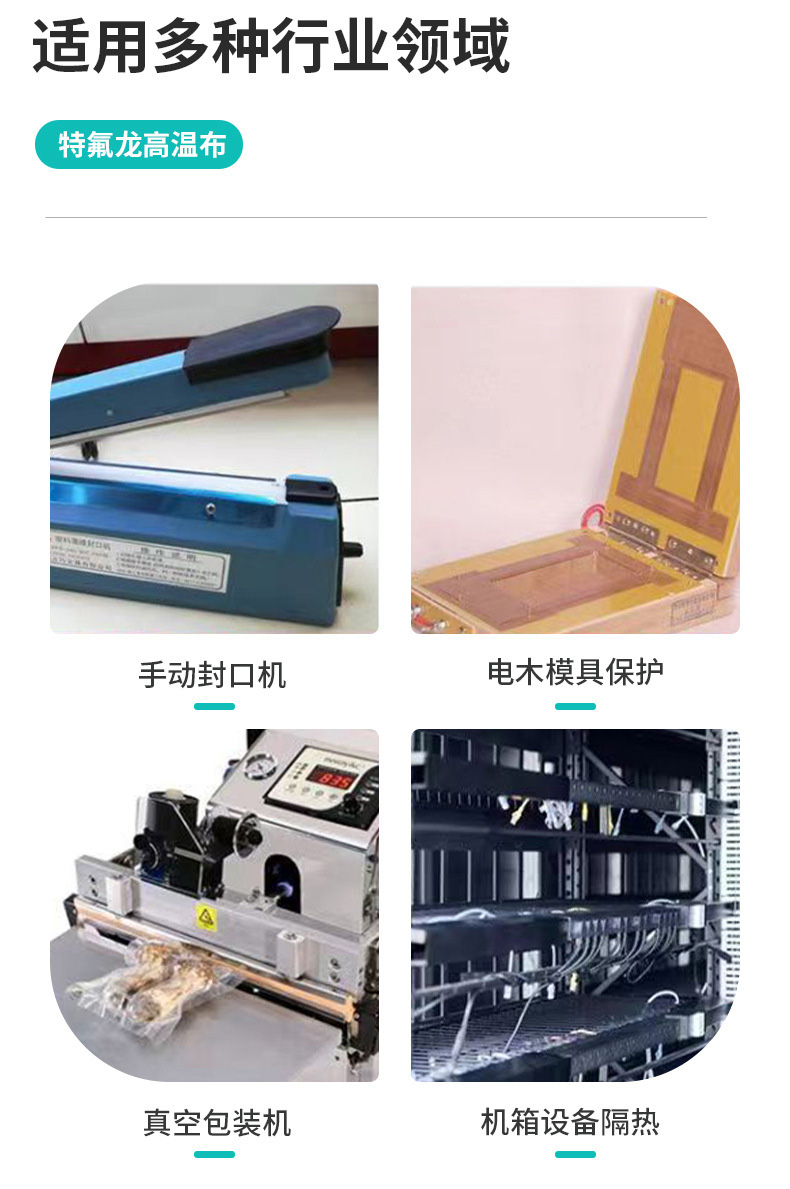 材質特性:特氟龍高溫布由特氟龍(PTFE)材質制成,這種材料具有出色的耐高溫性能、耐腐蝕性和不粘性能。這使得特氟龍高溫布在高溫環境下仍能保持穩定的物理和化學性能,適用于烤箱等高溫設備的脫模和隔熱需求。